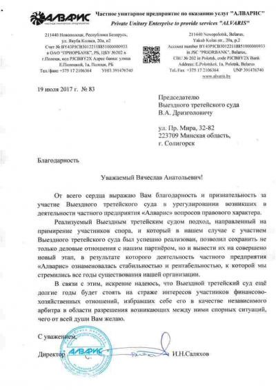 Репертаж Первого национального канала Белорусского радио о деятельности Выездного третейского суда